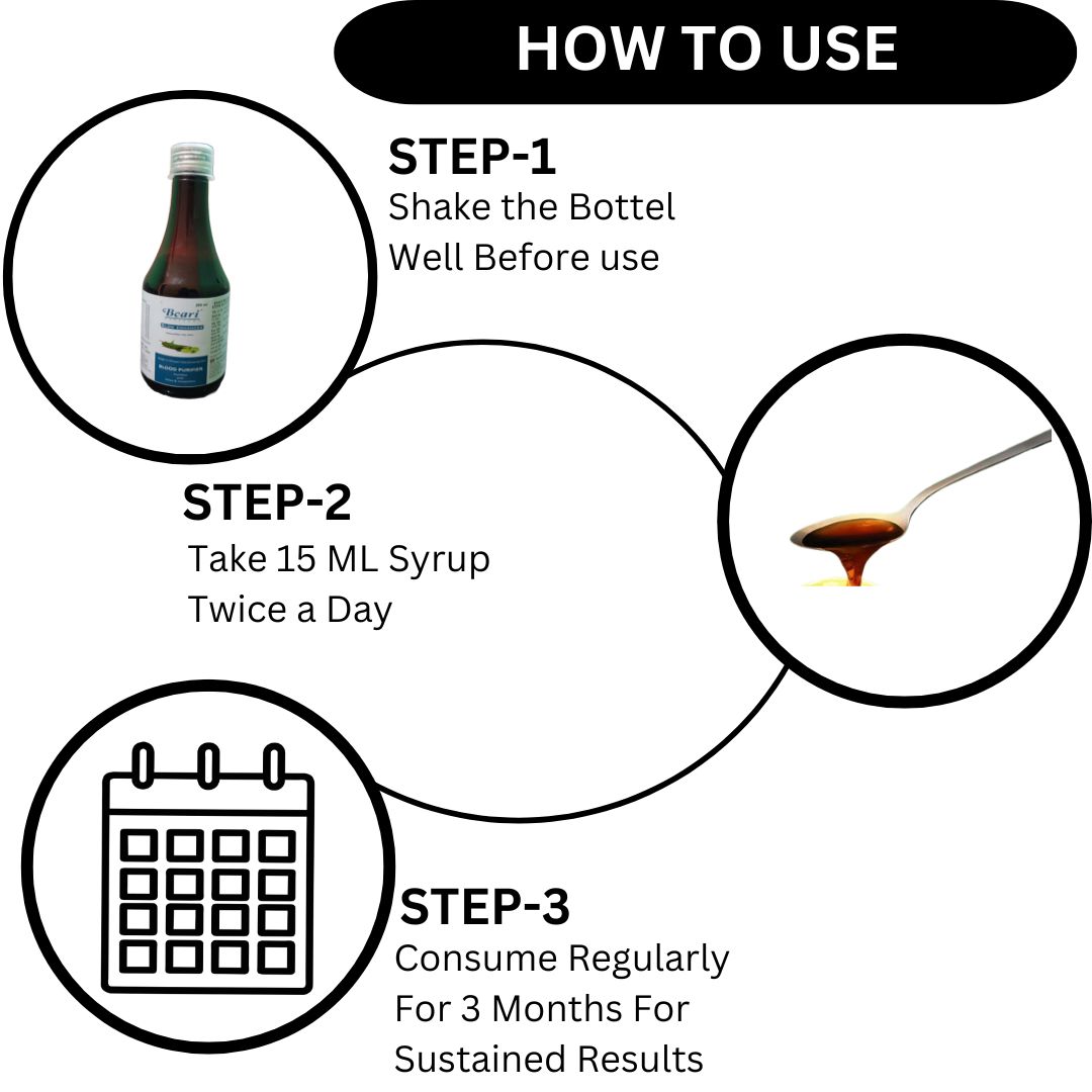 The Bcari Glow Enhancer Syrup appears to be a herbal or ayurvedic supplement aimed at promoting skin health and enhancing overall glow. It contains a combination of ingredients known for their skin benefits and general wellness properties. Here’s a breakdown of the key ingredients: