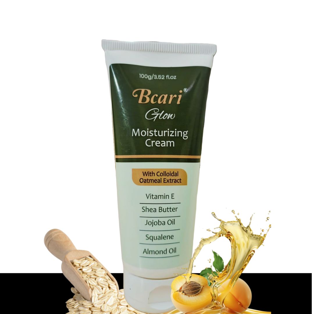 BCARI Glow Moisturizing Cream | For Dry & Itchy Skin | Long Lasting Moisturizer for Face & Body | With Colloidal Oatmeal Extract, Shea Butter, Vitamin E, Jojoba oil, Almond Oil | 100gm