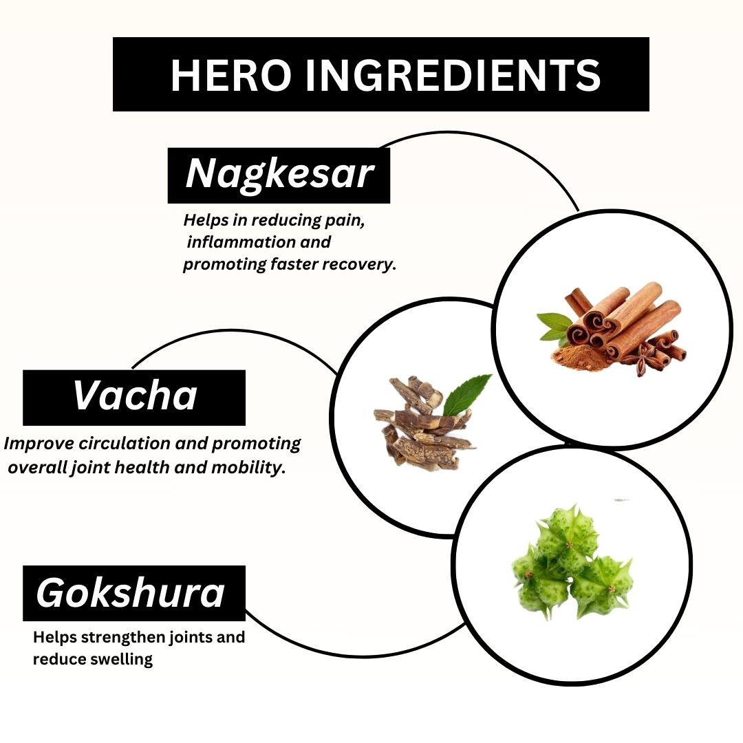 - Reduces Joint and Muscle Pain: The combination of Mahamash, Maha Narayan, Ratanjot, and Nirgundi works together to provide fast relief from joint and muscle pain, especially related to conditions like arthritis, back pain, and sports injuries.